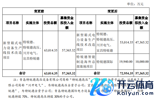 其中,《对于变更部分召募资金用途的议案》中提到,特锐德拟将“新式箱式电力开采分娩线技艺改良名堂”尚未使用的部分召募资金1亿元,转换用于新增募投名堂“特锐德智能制造国外总部基地名堂”。