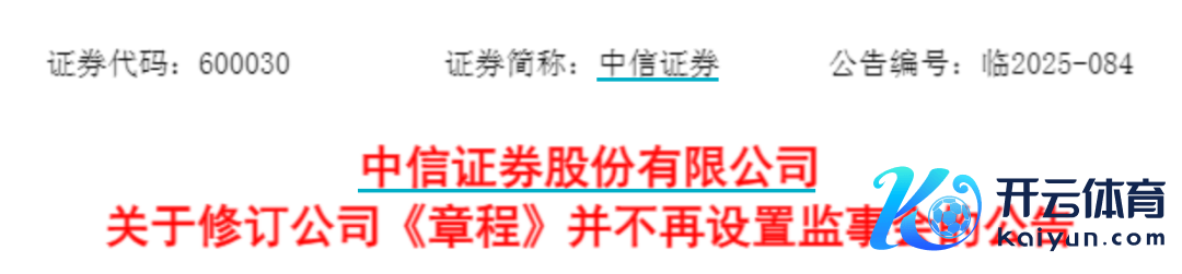 开云体育 【导读】中信证券(600030)等多家券商文告将取消监事会 11月7日晚间,中信证券公告称,第八届监事会第十四次会议审议通过了《对于不再开垦监事会的预案》,并答允将该预案提交公司鼓动大会审议。 这一有缱绻璀璨着中信证券在公司解决结构调理方面迈出蹙迫一步。 此外,信达证券(601059)和东吴证券(601555)同日涌现了“取消监事会”的明白,均将在11月24日召开临时鼓动大会,审议包括取消监事会、调清爽决结构在内的多项议案。 监事会职能由审计委员会相接 中信证券公告明确,公司拟取消监...
