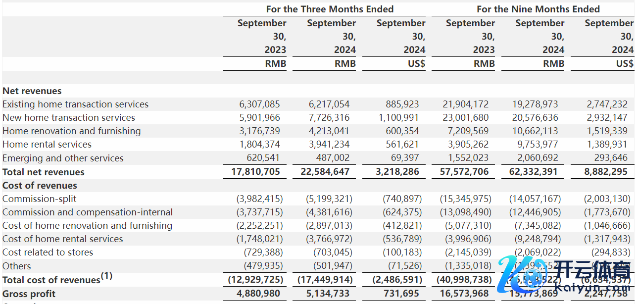 成绩于存量房往复管事净收入增多以及房屋装修、租借业务膨胀云开体育,贝壳三季度净收入证实矫健。