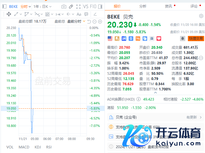 财报数据公布后,贝壳好意思股盘前下降近6%。