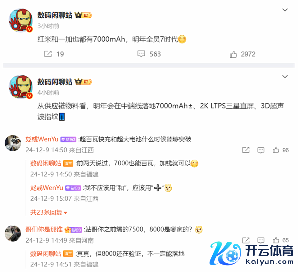 连年来各大厂商纷纷在硬件竖立和软件优化上束缚吐旧容新,以得志消耗者日益增长的各种化需求开yun体育网,也让市集竞争变得很强烈。 不外到了2024年之后,手机厂商内卷的标的基本唯一两个,第一个即是系统底层方面的优化,通过出色的优化带来极高的通顺度。 第二个即是续航才智,动作揣度智妙手机性能的弥留筹备之一,更是成为了各大厂商竞相角逐的焦点。 尤其是近期,有博主称来岁大大量新机在续航才智上齐会获取很大幅度的栽种,致使可以说达到了7000mAh电板容量。 瞩目来说,博主称红米、一加、真我、iQOO齐会...