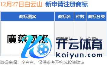 本站音讯开云体育,把柄企查查数据败露,近日广州白云山医药集团股份有限公司新提交“广药海外”商标注册央求。商标央求确定如下:
