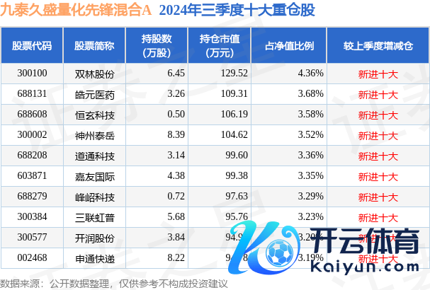 九泰久盛量化前锋搀杂A为搀杂型-无邪基金,左证最新一期基金季报理会,该基金财富成立:股票占净值比93.52%,无债券类财富,现款占净值比6.07%。基金十大重仓股如下: