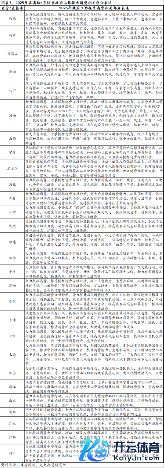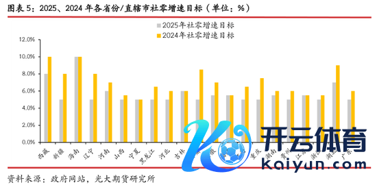 从宏不雅政策来看,2024年以旧换新政策无间加码,主要以汽车、家电家具、家装耗尽品为主,从效用来看,对关连商品销售额增长有昭彰拉动。2025年年头耗尽品以旧换新延续,况且加力扩围。各省份/直辖市政府责任证明对提振耗尽专项行动着墨较多,是扩大内需发力的进犯握手。天然地方政府社零增速指标有所下调,但精深指标值大于2024年本色值,标明耗尽关连政策会慢慢加码。
