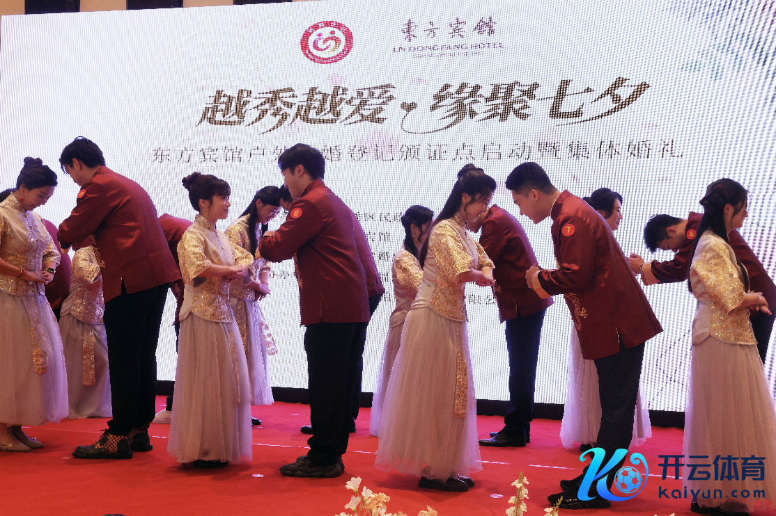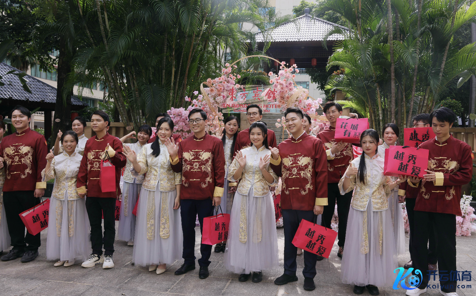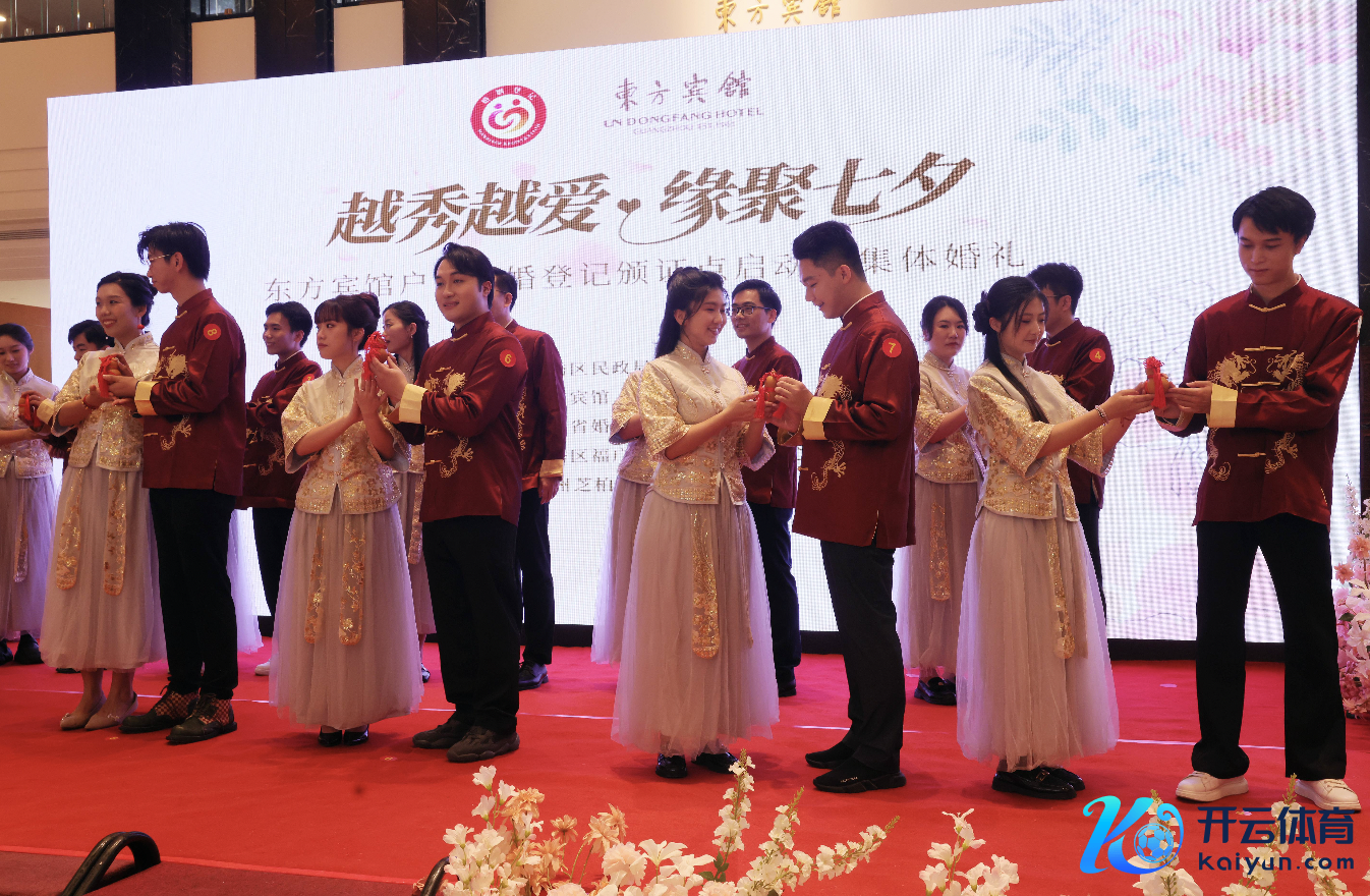 8月29日开云体育,在广州东方宾馆户外中庭花坛,兼具狂妄心情与文艺气味的岭南特点园林格调的“花城有囍”成婚登记户外颁证点联结了10对新东说念主,在集体婚典的狂妄氛围中共度七夕。