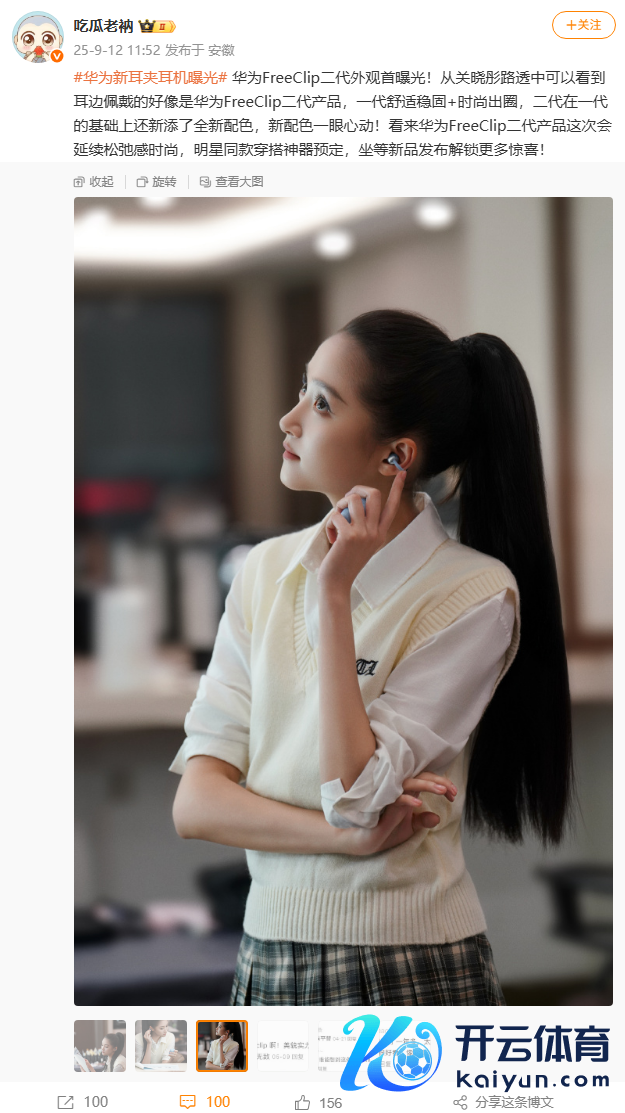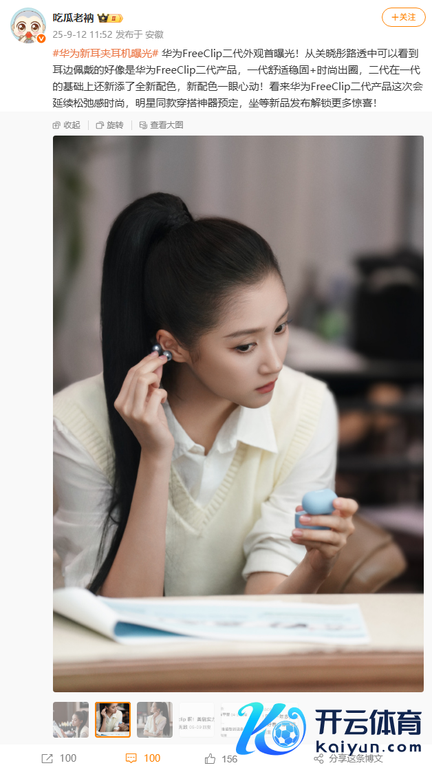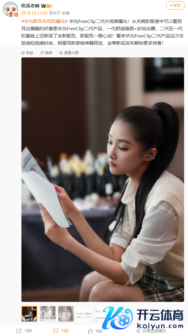 IT之家 9 月 12 日音讯,今天有文娱博主放出了三张关晓彤佩带 FreeClip 2 耳夹耳机“丹宁蓝”的路透图,获取各路数码博主转发,意味着 FreeClip 2 或将在近期发布。 IT之家查询约略,华为 2023 年推出了首款改进形状的耳夹式耳机 ——FreeClip,继承“C 形桥”盘算推算,利用镍钛缅念念合金,单耳分量 5.6g。 凭据 @数码闲话站 爆料,华为 FreeClip2 型号 T0027,传输速度、音质判辨、佩带体验皆会升级,配色有羽沙白 / 摩登黑 / 丹宁蓝,暂定...
